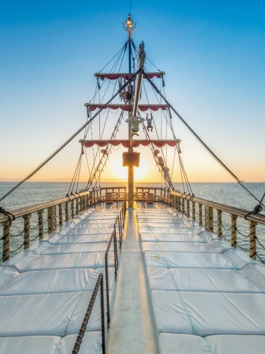 Pirate-themed crew adds an exciting edge to your journey on board. Dressed to the nines in their pirate outfits, they are ever-ready to help you and enhance your onboard adventure with their friendly and helpful demeanor.