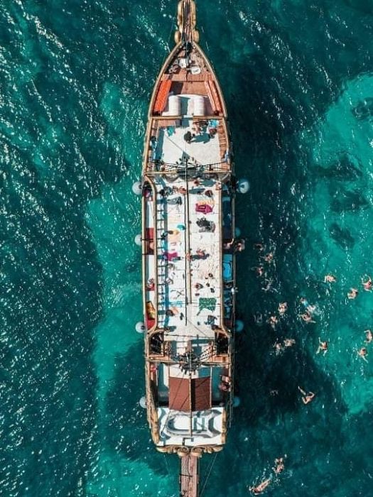 This tour is a blend of relaxation, exploration, and excitement in a lively pirate-themed environment. With the distinct 3-decked wooden pirate boat, ‘Pirate of Kos’, it can host up to 250 passengers. Each deck provides a different ambiance, whether you’re looking to catch some sun rays, unwind in a laid-back setting, or find solace in a cooler spot downstairs.