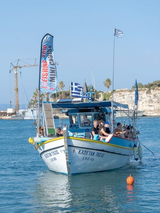 Kos island fishing trips costs 50 EUR for adults, 40 EUR for non-fishing guests and for children under 9 years old.