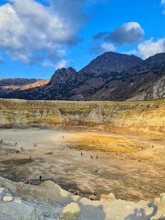 You will have the opportunity to walk inside the crater of a dormant volcano, witness the sulfur hissing, and explore the charming town of Mandraki.