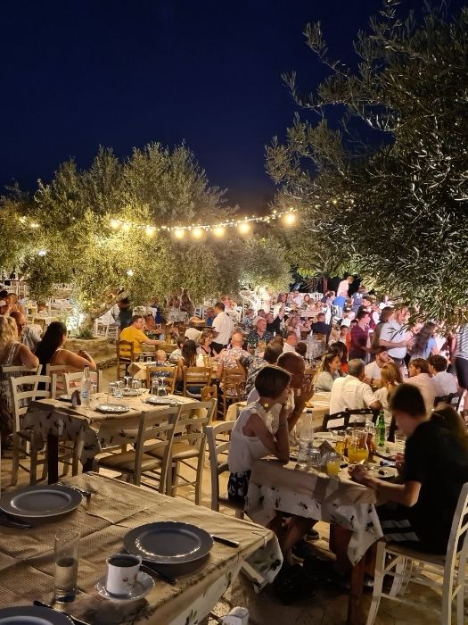 The Greek Evening Zia event takes place at the Fantasia restaurant. This restaurant offers stunning views of the Lambi valley, the Aegean Sea, and the Aegean islands.