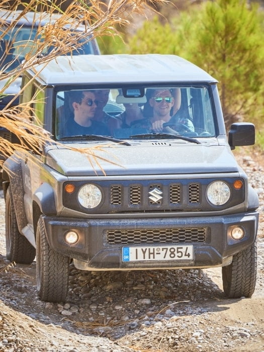 Rhodes Jeep Safari route spans 150 kilometers, taking you up to 570 meters above sea level. Vehicles are comfortable Suzuki Jimny jeeps, equipped with full air conditioning, providing a pleasant journey in summer months.