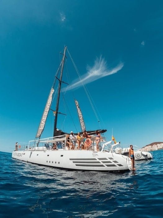 In 2025, Tenerife Five Star Catamaran price is €60 for adults, €30 for children between 4 – 13 years old and free for under 4 years.