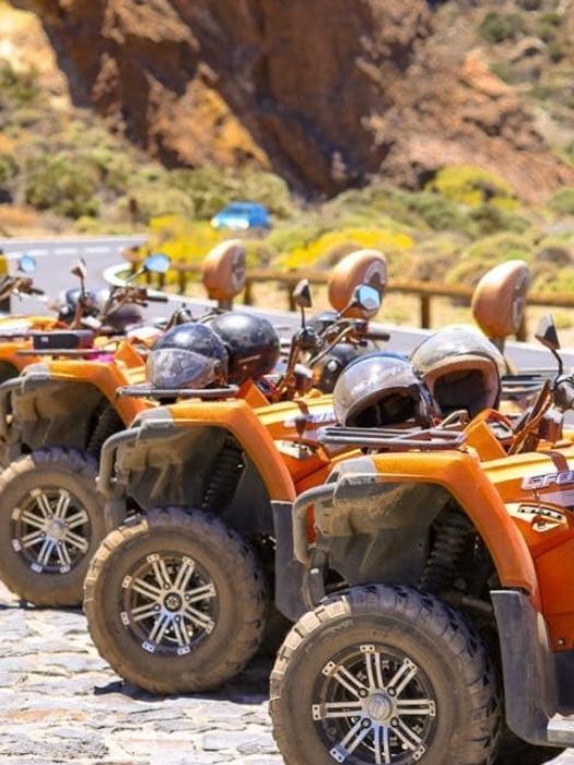 Tenerife quad biking is a thrilling adventure lasting 1.5 to 3.5 hours, with off-road, sunset, and Teide options. You will be riding 400 cc quads and they are automatic, two-seated. They are simple to use, suitable both for beginners and advanced riders.
