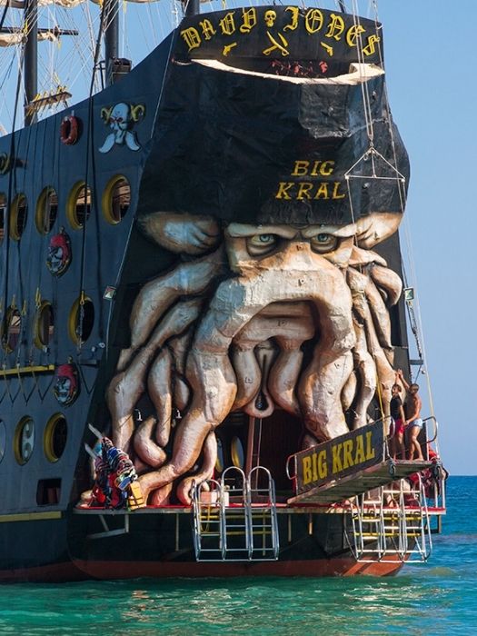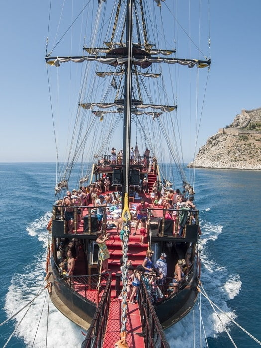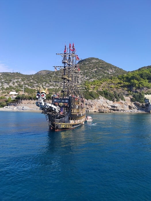 Alanya Big Kral boat trip is an 8-hour voyage on a big pirate ship with animations and foam party across the waters of the Mediterranean Sea. You have undoubtedly seen many ships and yachts cruising the sea of Alanya. However, Big Kral stands out from the others. It is a very stylish, huge ship that looks like a 17th-century galleon.