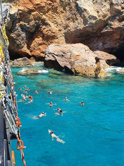 The boat will drop anchor up to 5 times throughout the day for a refreshing swim break. There are games to suit younger children, from face painting to wearing pirate bandanas.