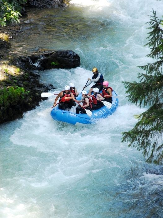 Rafting for an hour, swimming, eating in a restaurant, and rafting again. An amazing day out in the holiday. The atmosphere is excellent near the mountain river, and the air is fresh with forest scents.