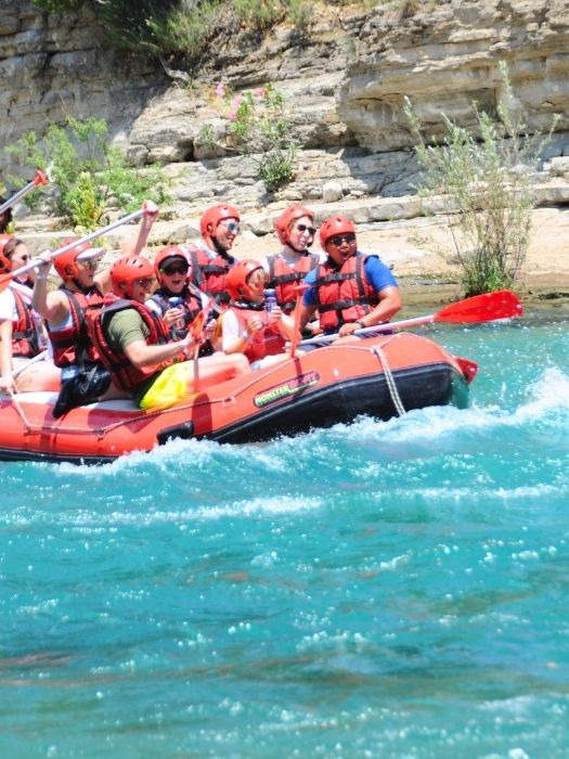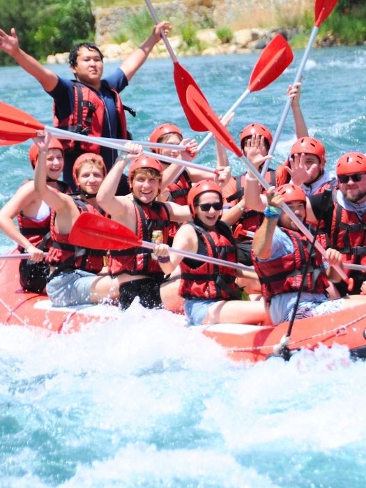 You will arrive at the rafting area in Köprülü Canyon at 11:00. Here, pine trees, high rocks and a cold river surround you. There are places in the facility where you can meet your needs such as showers, toilets, changing cabins, cafes and markets