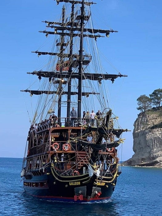 In 2025, Belek pirate boat trip price is €35 with lunch & soft drinks. Children between ages of 4 and 10 are €20 and children under four are free.