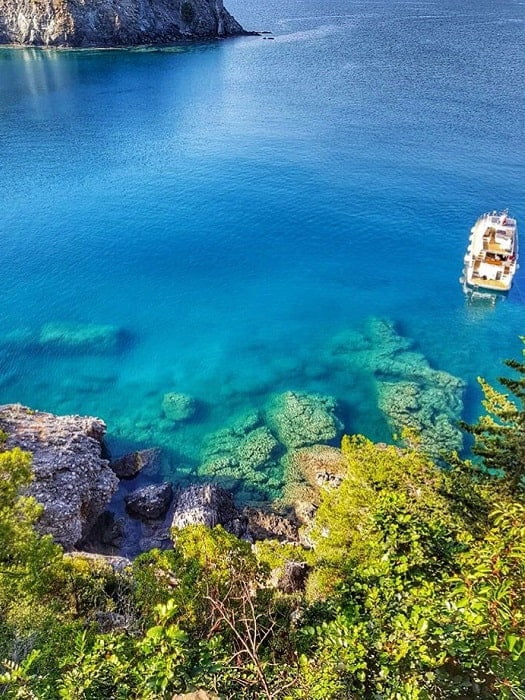 The ship goes out daily, seven days a week, and its hours of operation are from 09:00 until 23:00, with several stops along the Kemer coastline for swimming and or snorkelling in the clear blue waters of the Mediterranean.