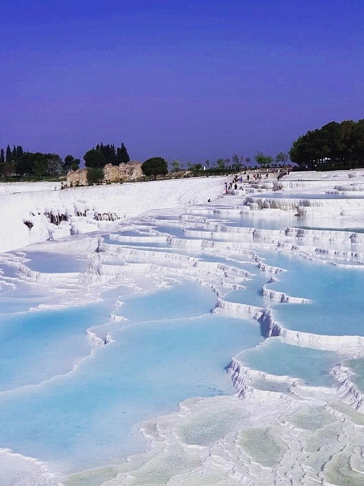 Pamukkale tour from Belek is a day trip to see Hierapolis ancient city, travertines of Pamukkale and the Cleopatra’s Pool.