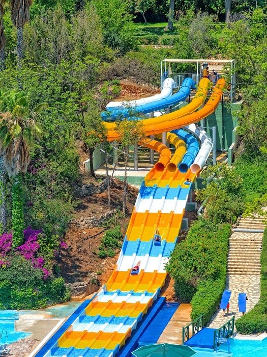 In 2025, Belek Waterhill Aquapark ticket price is 34 € for adults, 30€ for children between the ages of 4 and 11, and free for children at and under three years old.