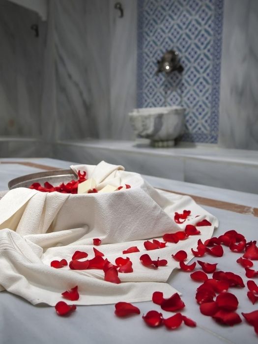 Either wear hamam shoes or take it very slowly as the marble and the heat can render the floors slippery.