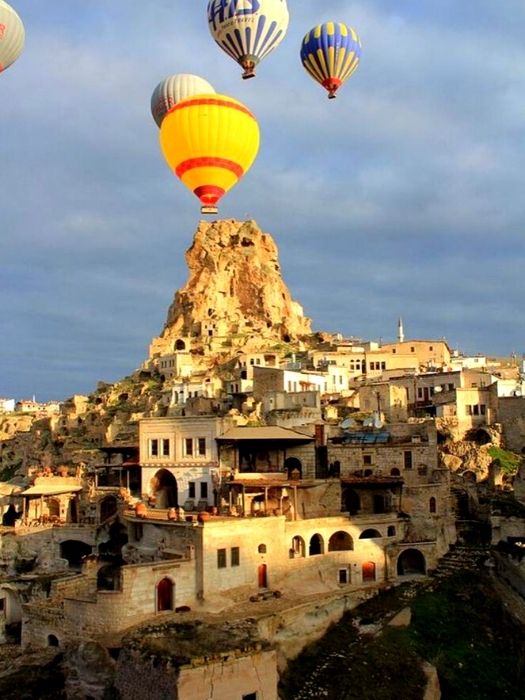 Goreme with its fairy chimneys, believed to once be the source of air to the underground city, are astounding to see.  If you are lucky you will even get to see the hot air balloons floating over the landscape.