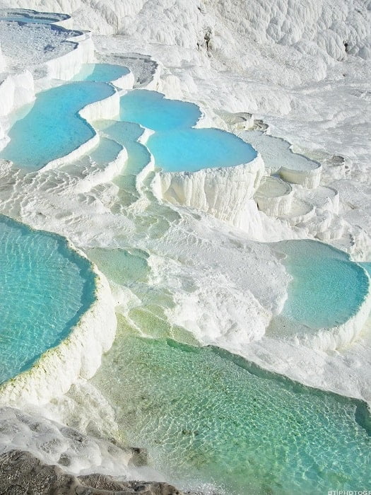 Footwear of any kind is not allowed to be worn while climbing the travertines. This is to protect the rocks and keep them white. One of the other known place in the world where you will find these calcified rocks is in Yellowstone Park in the USA. The wearing of footwear causes discoloration of the travertines thus Turkey is the only place in nature where you will find this amazing wonder of nature.