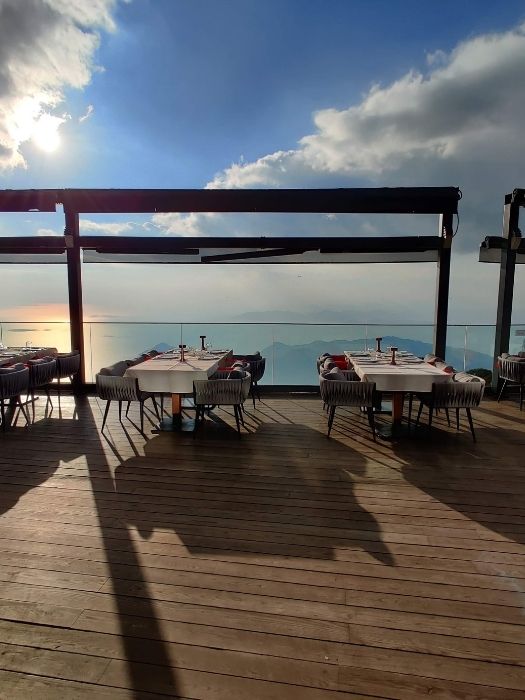 You will be able to sit down to eat in the restaurant located approximately 1700 metres above sea level, at one with the clouds and as close to the mountain that you could possibly get. Early evening you will be able to spot the paragliders soaring down towards the lagoon and beach at Olu Deniz before you have your breath taken away by the crimson colours of a glorious Turkish Sunset. With the right weather conditions you may also be able to make out the Greek Island of Rhodes rising out of the Mediterranean Sea.
