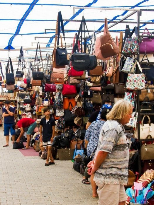 There is an area of the marketplace dedicated to textiles and here you will find luxurious fabrics and silks as well as bathrobes and hamam style towels known as âpeshtemalsâ. Of course you will also find your clothes, handbags and belts in this section and with many a well known brand on offer albeit counterfeit, you are sure to find a bargain.