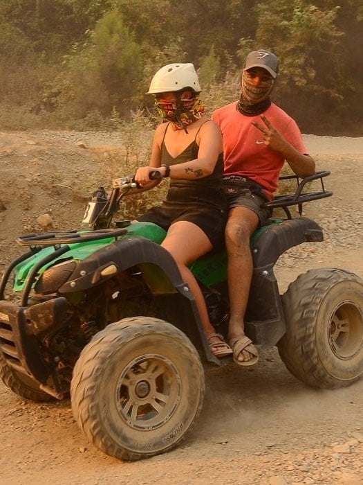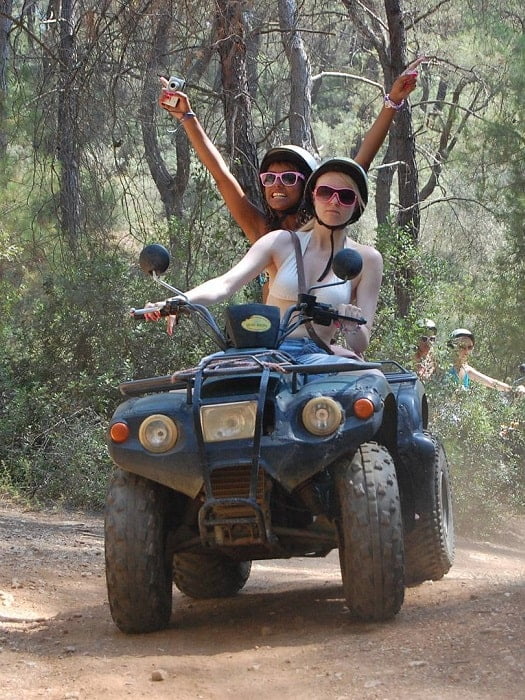 Fethiye quad biking is a 2-hour adventure for you, your family and friends. The tour takes you off-road through the stunning forests of Turkey. This unique tour is ideal for those looking for thrills and breathtaking views. You will be provided with a powerful ATV and a guide who will lead you through rugged terrain revealing stunning scenery. Starting at the base, the tour winds through hidden valleys, twisting roads and rolling hills, giving you the chance to enjoy fresh air, varying landscapes and trails of varying difficulty levels. You’ll drive off-road, leaving behind splashes of water and dust. You will pass through the ghost village of Kayakƶy, eucalyptus and pine forests. You can choose between a single or double quad. You also have a choice of several sessions throughout the day: morning, afternoon or evening. This is a very popular tour, please try to book at least one day in advance. We will pick you up at your hotel at a pre-arranged time in a comfortable car, you will be given a briefing and test drive and we will bring you back to your hotel after the end of the tour (in about 3 hours). Helmet, well-maintained quad bike, both transfers, insurance, accompanying instructors are included in the tour price. Whether you are an experienced rider or a beginner, quad safari in Fethiye is an exciting and unforgettable experience that is sure to leave you with memories to last a lifetime. So why wait? Book your tour today and get ready for an adventure that will make your holiday stand out!