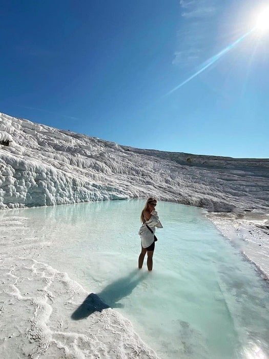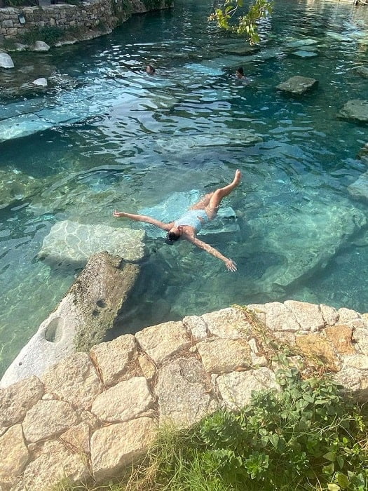 Your swimsuit, sunglasses and sun creams, together with towel and sensible footwear. You will not be permitted to wear your shoes on the travertines, however they are easy to walk on. N.B. Only where you see green algae is it slippery, do take care when you see it.