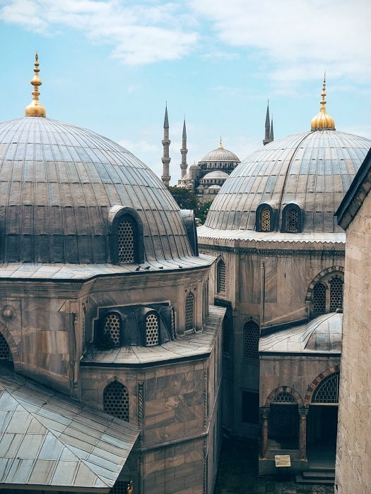 A stone’s throw away is the impressive building of Hagia Sophia whose outer walls house the tombs of Sultans, their concubines and their children. Hagia Sofia has a diverse history across the main religions and is today used as a mosque.