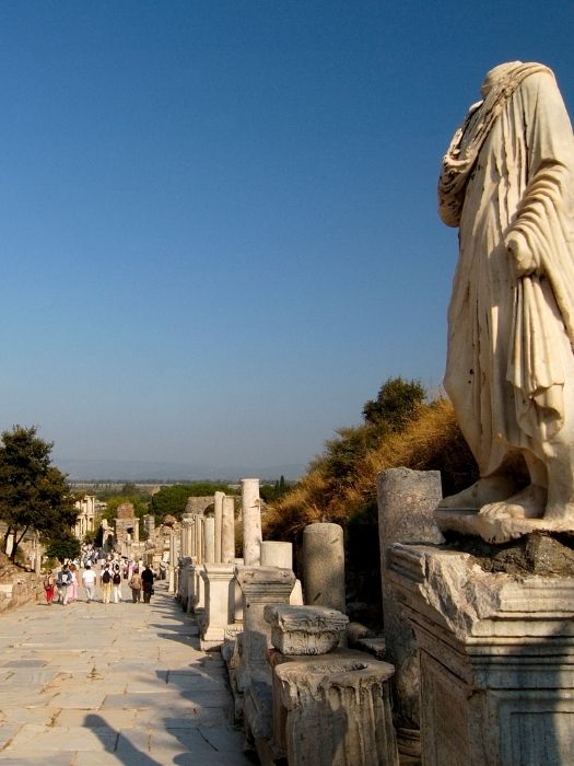 Millions of tourists have walked the ancient streets leading down to the Library of Celsus (pictured on your paper lira in Turkey). Tourists with a love of familiar history. There are even whole streets of Roman architecture revealed for your amazement, with entire rooms, structurally as they once stood. Even the public toilets could function today. Families with student children come here to see for themselves just how big a metropolis Ephesus once was, and to wonder at its demise.