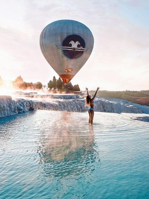 Kusadasi Pamukkale tour with hot air balloon ride is an excursion to see white travertines of Pamukkale from 1.000 meters at the sunrise.