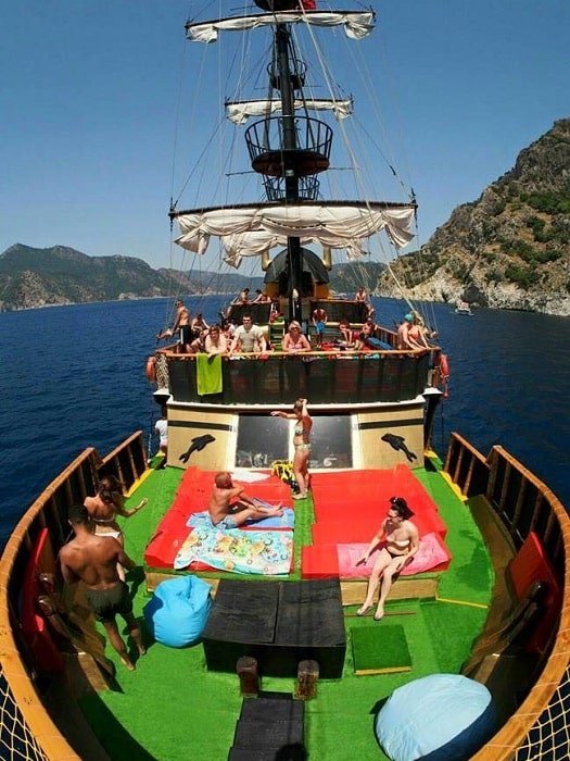 Cost of Marmaris Pirate Boat Trip is 25 € for adults, 15 € for children between age 7 and 12, free for children under 6 years old in 2025.