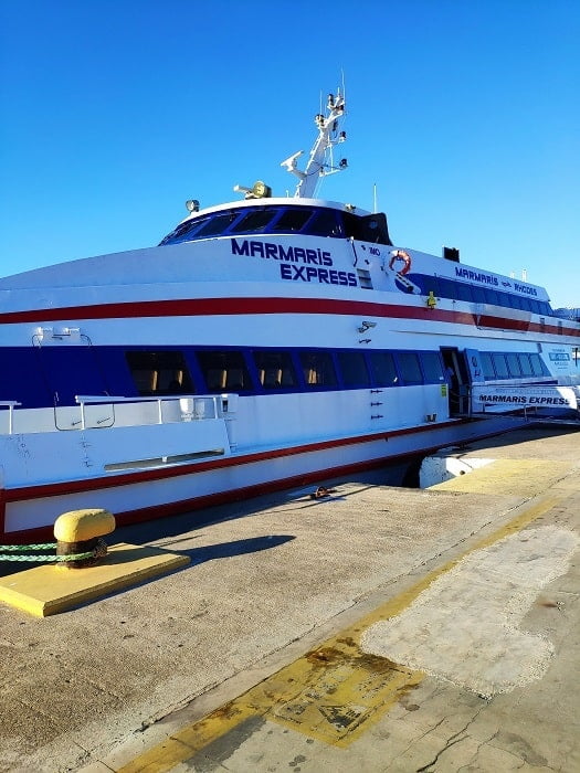 The comfortable ferry is a fast catamaran and the journey along the coast, before veering off towards the Island of Rhodes should take around 40 minutes.Â