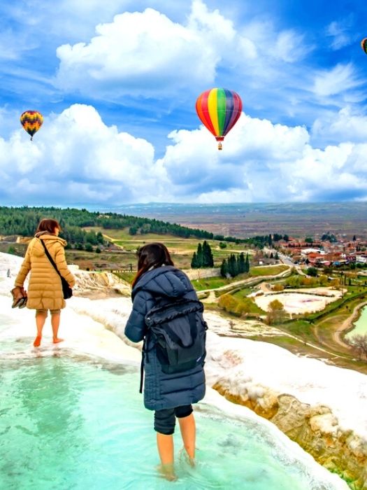 Until October 2025, price of Pamukkale Hot Air Balloon Price is 90 € for adults. This rate includes both way transfer from your hotel, snacks before the flight, the balloon flight itself, champagne toast and flight certificates. The flight will last anything in between 50 and 70 minutes.