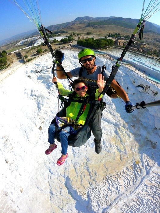Pamukkale Paragliding is not recommended for anyone with heart disease. Nor is it recommended for pregnant women. People who weigh over 100 kgs are not allowed to fly and neither are children under the age of 6. Clearly it is not for anyone who has a fear of heights.