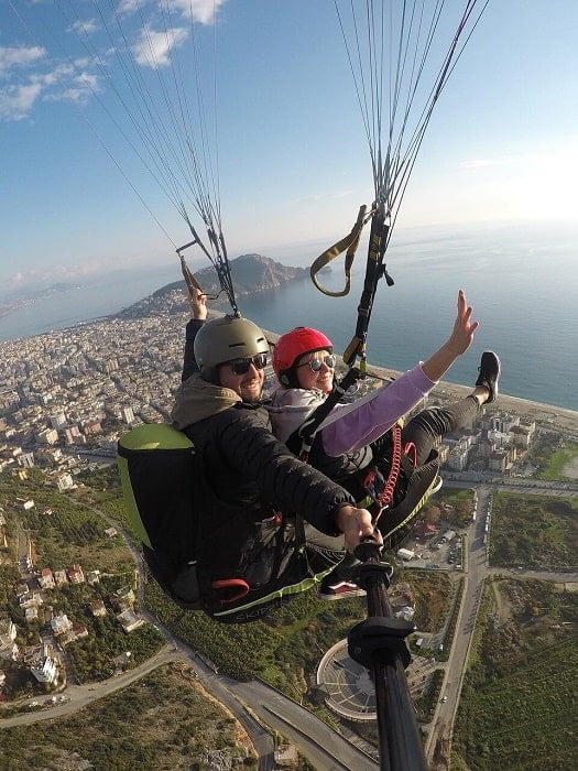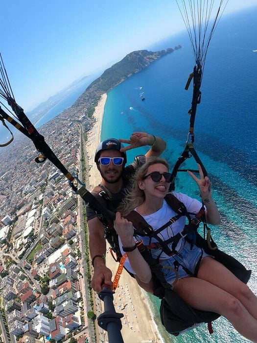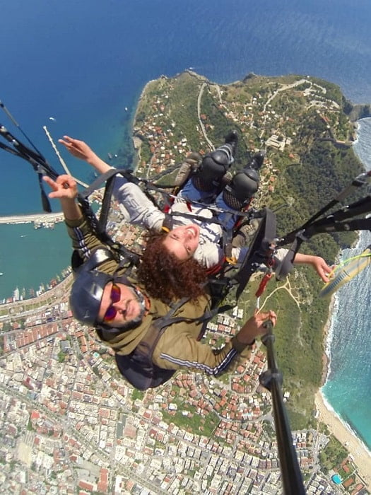 We will pick you up from your hotel and drive to Alanya. Afterwards, our pilot will provide all your equipment and give you pre-flight briefing. You will be flying in a paraglider with an experienced instructor (indicate when booking if you want a female instructor). The flight lasts about 15 minutes, altitude up to 700 metres.