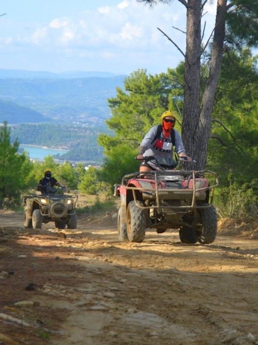 You will be picked up at your hotel or apartment in the Side region and taken to the uad centre at the foothills of the Taurus Mountains. Once you arrive at the base you will receive a safety talk from our qualified instructors and introduced to your quad. You will have the chance to ride singly or in tandem. It should be noted that a second rider on the same quad pays less and you will later have the chance to swap driving seats so that both riders have a turn at driving. You will then have a short test drive to get you used to your ATV. All the vehicles are 4 x 4 and built for the off road experience of a lifetime.