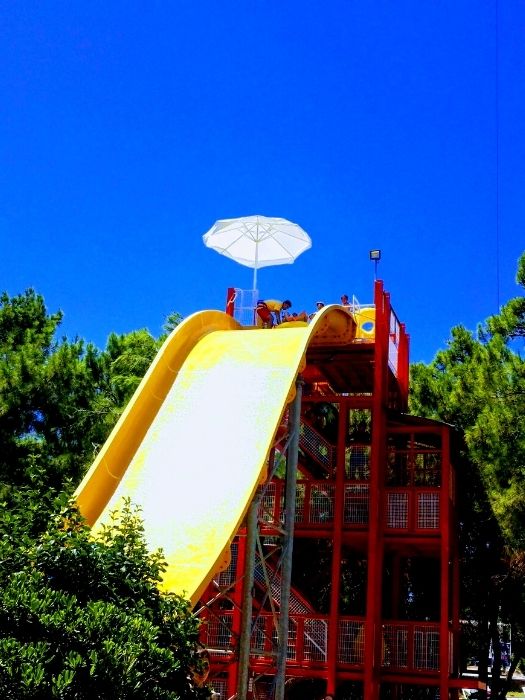 Firstly, your swimsuit, towel, sun cream, sunglasses and sun hat if you want one. There are many terraces overlooking the pools and slides, natural sun traps, so there is no need to lose tanning time while you are at the park.